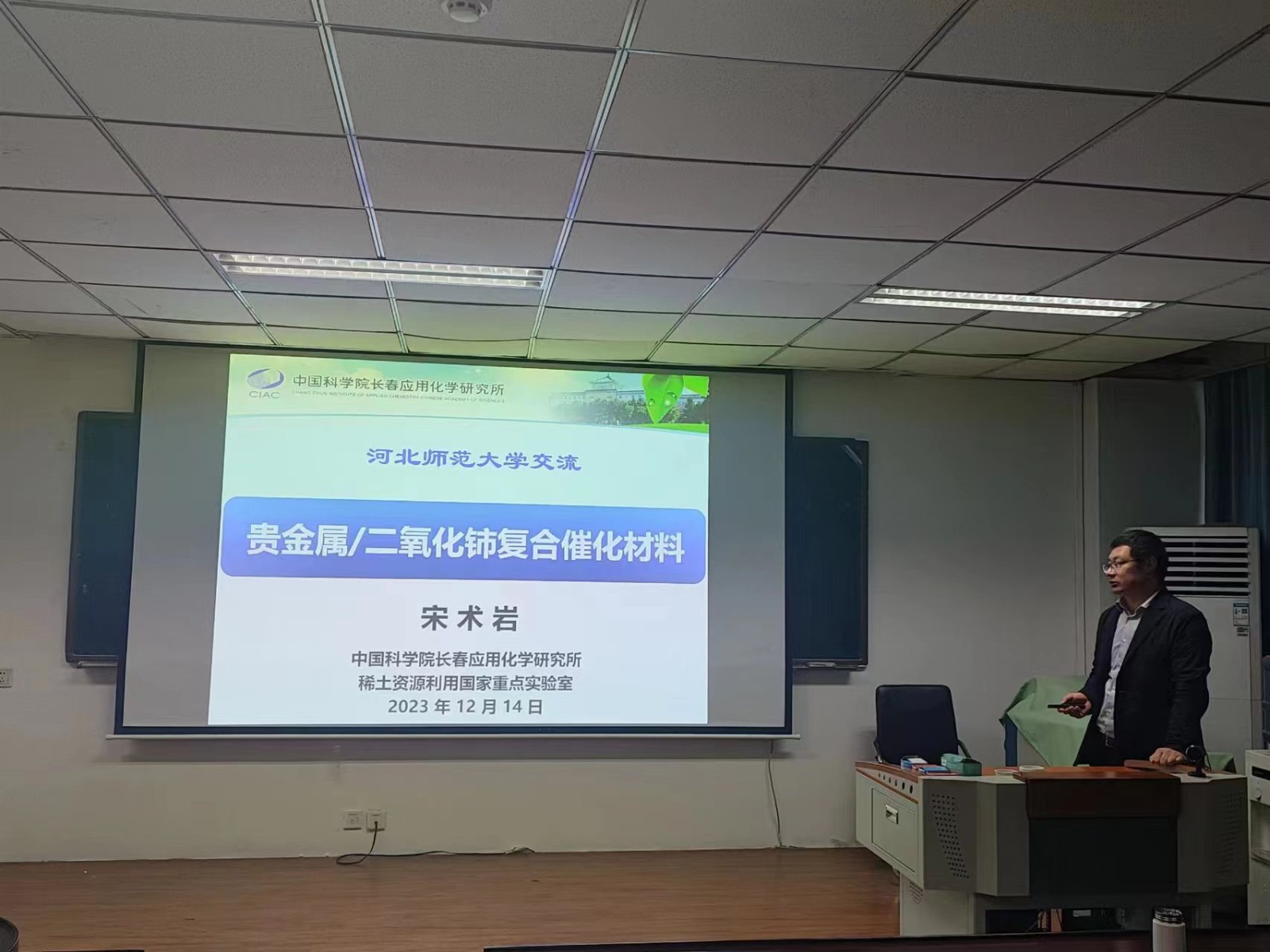 2023年12月14日上午,应永乐高ylg8888邀请,中国科学院长春应用化学研究所宋术岩研究员为学院师生做了题为“贵金属/二氧化铈复合催化材料”的学术报告。报告由副院长韩占刚教授主持,学院相关教师与研究生参加了本次学术讲座。
